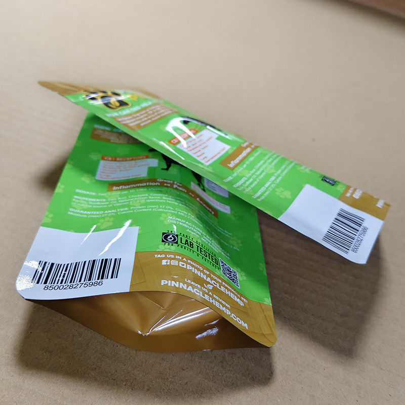| 穿刺耐性 | 強化されたラミネート デザイン | 7ミルの厚さ + 交差したPE層は,鋭いペットフード (例えば,キブリ) の縁からの衝撃に耐える.ASTM D1709衝撃試験 (≥16lbs の刺す力) |